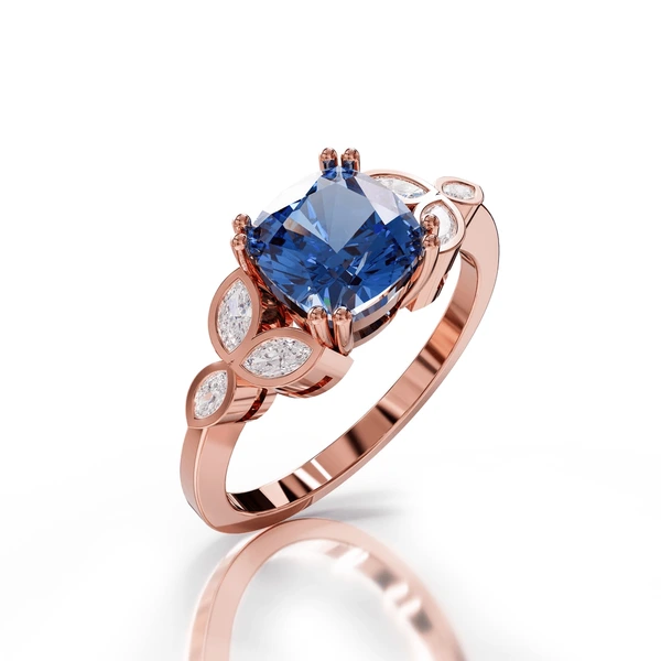 Plavo Srce Prsten – Roze Zlato